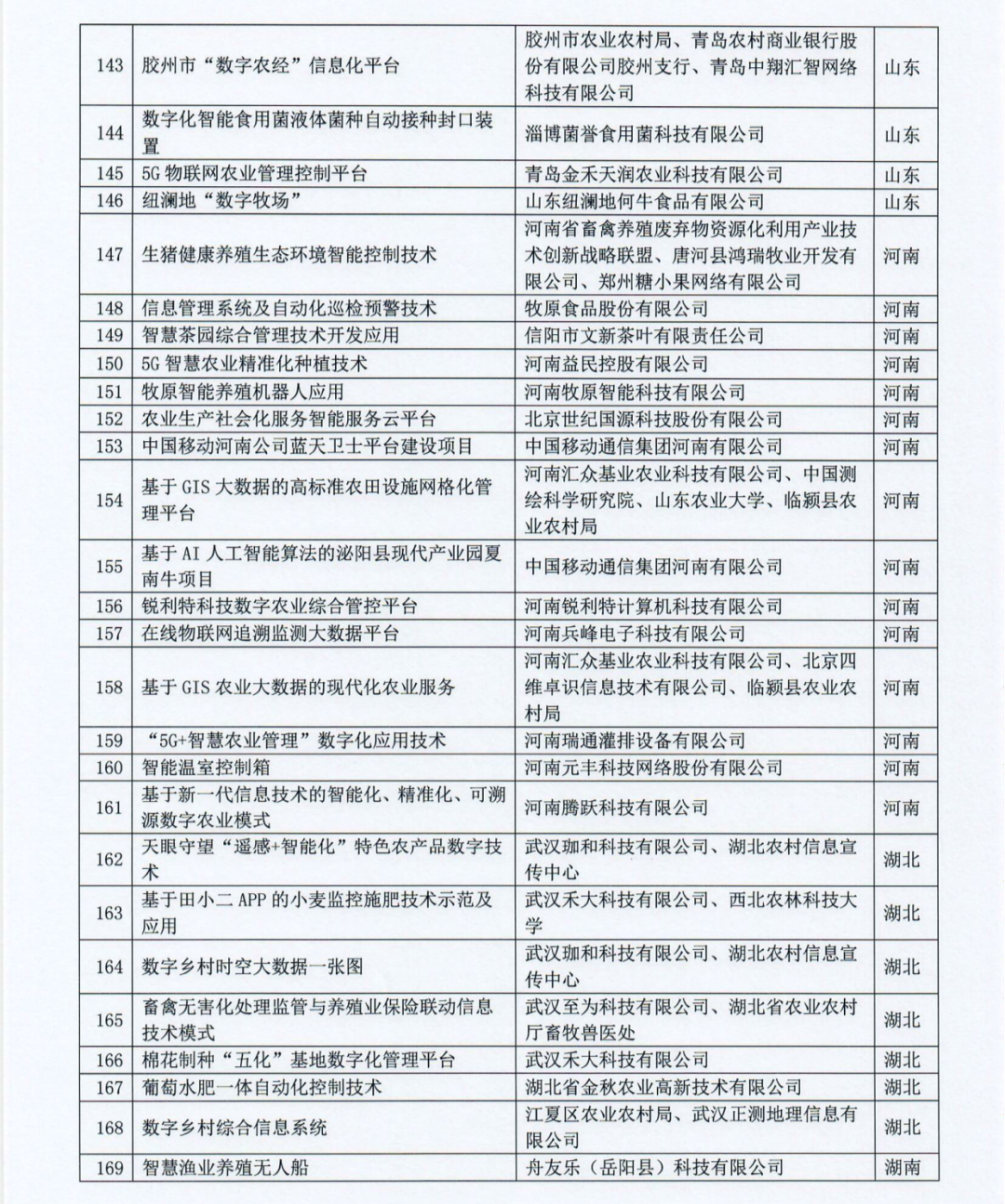 信息化是“四化”同步发展的加速器、催化剂,数据也已成为推动农业农村发展的新生产要素。2021年中央一号文件提出,要实施数字乡村建设发展工程,发展数字农业,推动新一代信息技术与农业生产经营深度融合。为落实中央部署要求,农业农村部信息中心自今年年初开始,就面向全社会征集数字农业农村的新技术新产品新模式。据介绍,此次公开发布推介的205个优秀案例,是对660余份申报材料经专家评审推荐、集体研究审议、网上公示后最终确定的。这一批新技术新产品新模式,将在推动农业高质高效、农村宜居宜业、农民富裕富足和乡村治理体系和治理能力现代化方面,提供有力有效的数字化支撑。 以下为205个数字农业农村新技术新产品新模式优秀案例名单