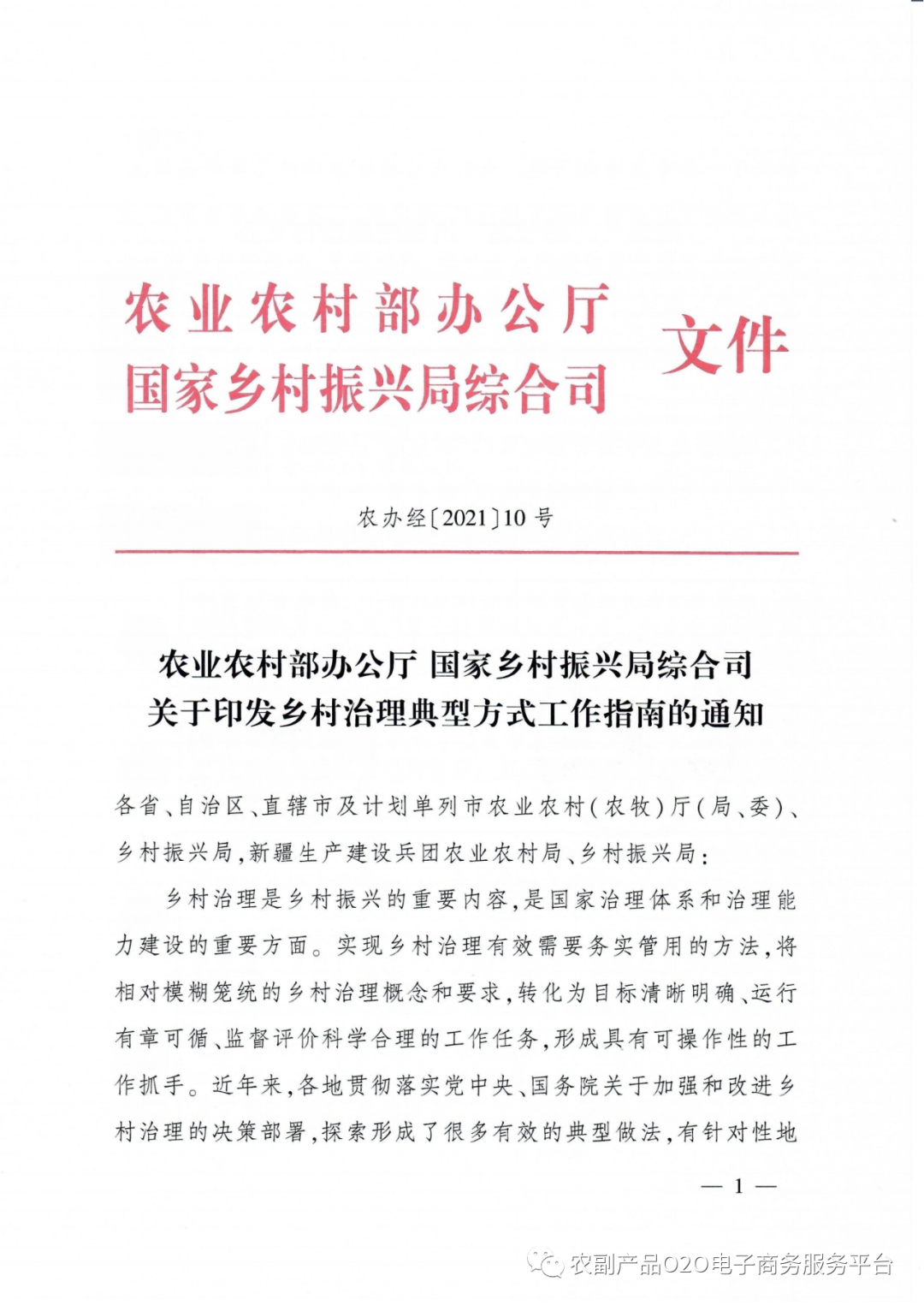 农业农村部办公厅通知发表时间:2021-11-08 19:26 农办经【2021】10号 各省、自治区、直辖市及计划单列市农业农村(农牧)厅(局、委)、乡村振兴局,新疆生产建设兵团农业农村局、乡村振兴局: